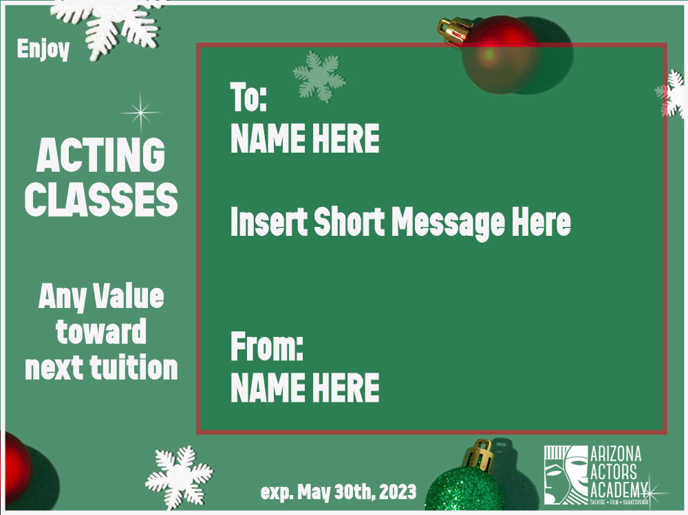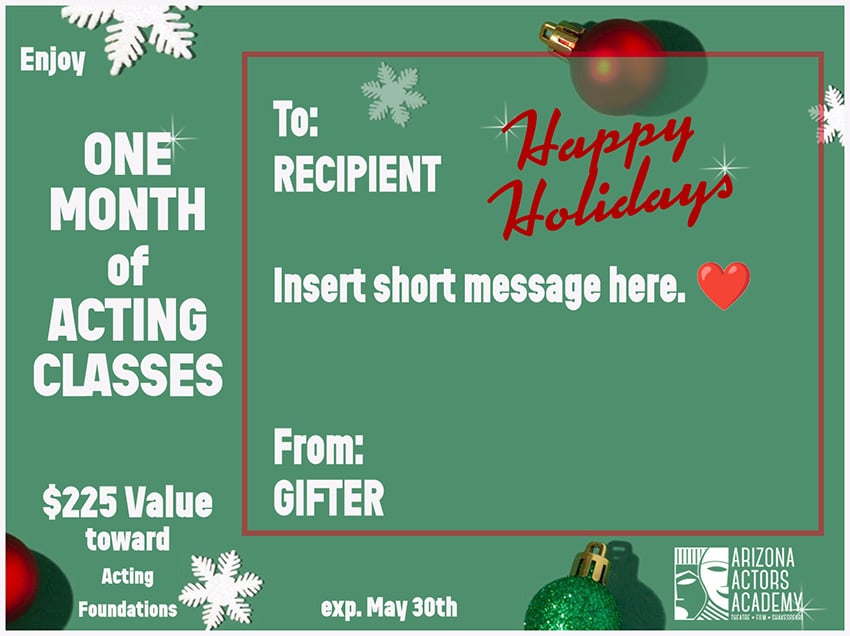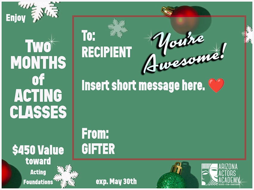 - You can gift someone 1 to 2 months of our Acting Foundations course (a two month program) or a tuition credit gift amount.